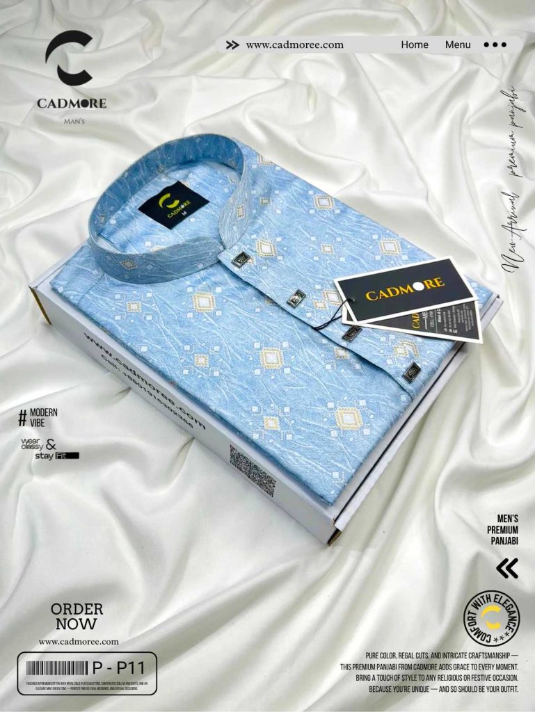 এই পান্জাবীতে হেরিংবন কটন Fabric (সম্পুর্ন সুতি কাপড়) ব্যবহার করা হয়েছে।